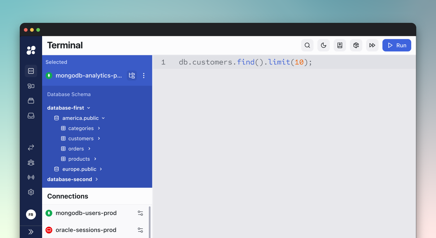 Create and manage connections to various resources:- Databases (PostgreSQL, MySQL, MongoDB, etc.)