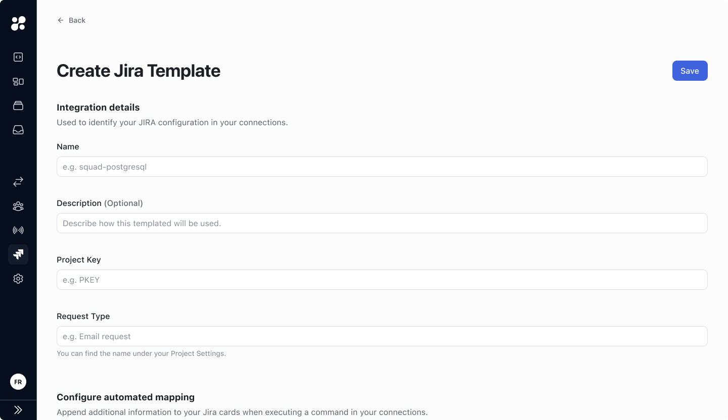 • Automated Mapping: Append additional information to created Jira tickets when executing commands in a connection.