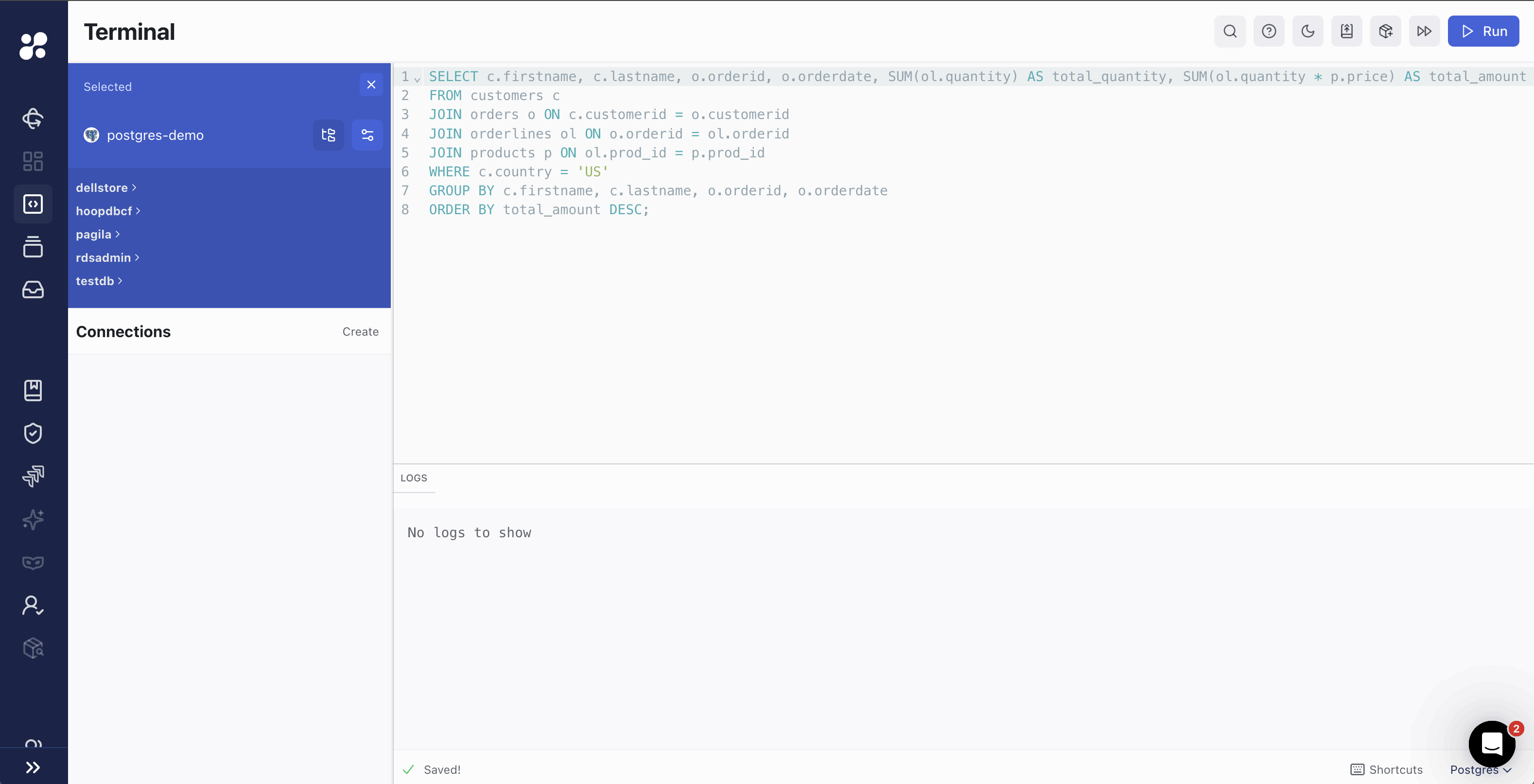 Click in the Run button to execute the query and see the results.