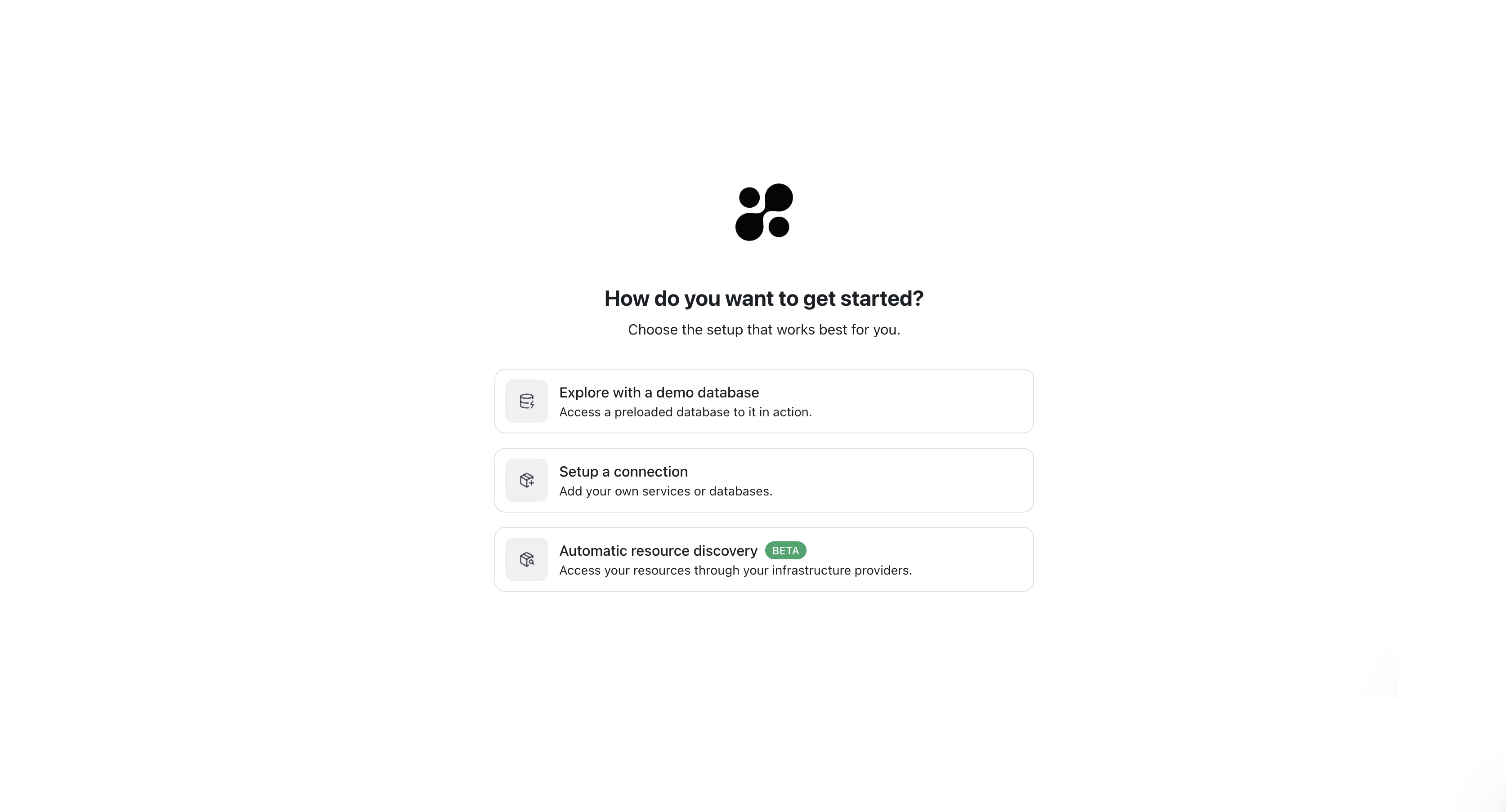 Click to explore with a demo database and you will be able to create your first connection and start exploring the platform.